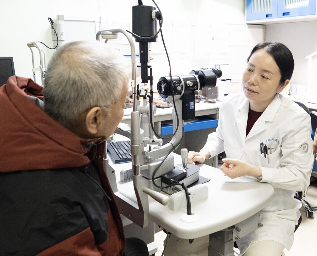 天津眼科医院副院长张晓敏为患者做诊治