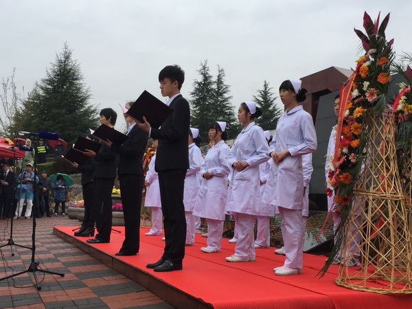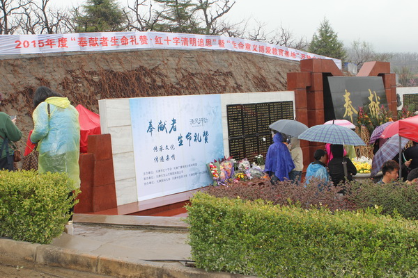 为弘扬“人道、博爱、奉献”的红十字精神,贯彻落实《天津市人体器官捐献条例》,追思缅怀奉献爱心、挽救生命和支持医学科学事业发展的捐献者,促进社会文明进步,市红十字会于4月2日上午在蓟县元宝山庄生命纪念园举办了人体器官(包括眼球或角膜)、遗体无偿捐献者缅怀追思活动。天津中医药大学学生诗朗诵,宣读2014年捐献者名单,向捐献者鞠躬献花,捐献者家属、受捐者代表发言等环节将活动一步步推向高潮,淅淅沥沥的小雨让整个活动场面更加庄严、隆重、感人,此次活动对追思缅怀无偿捐献的逝者、教育感染后人、推动我市人体器官捐献工作、缓解器官来源紧张局面将发挥有益的促进作用。我院医务科、防盲办公室张新升等同志代表医院参加了上述活动。