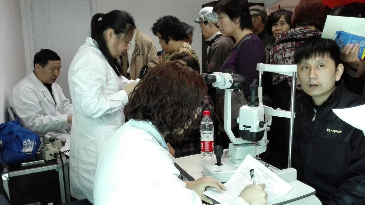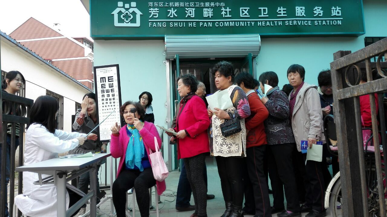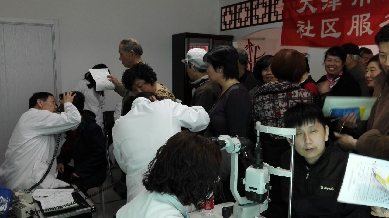 4月17日上午,天津市眼科医院社区服务直通车来到河东区芳水河畔社区,为居民义诊157人。
