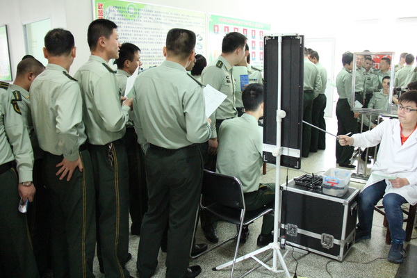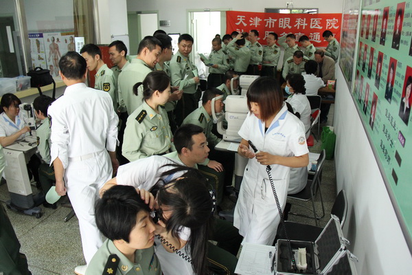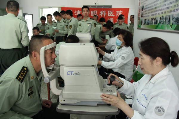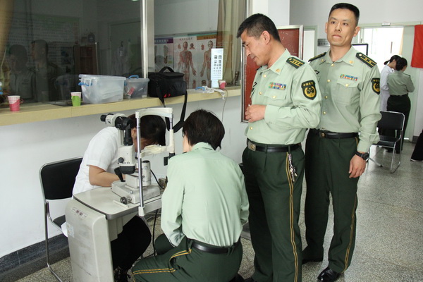 2015年05月7日为最可爱的人送健康-市眼科医院社区服务直通车为中国人民武装警察部队指挥学院义诊