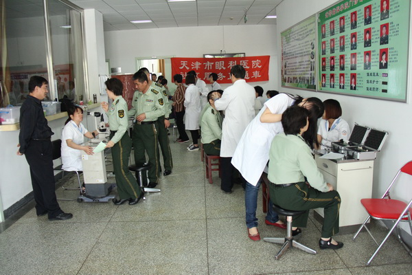 为了进一步加强军地联系,共叙军民鱼水情,5月7日上午市眼科医院社区服务直通车医护专家组成拥军义诊队来到中国人民武装警察部队指挥学院,为部队180多名教师、学员和家属进行眼科义诊,并发送药品18支,修理、清洗眼镜60余副,发放眼科科普材料300多份,受到了部队领导的高度赞扬和学员的热烈欢迎。