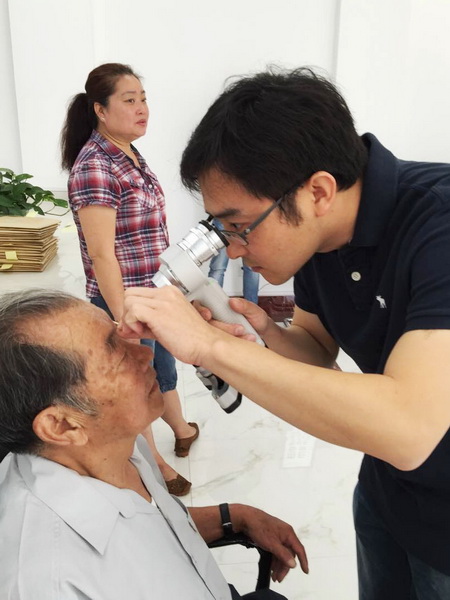 在今年“6·6”爱眼日当天,我院联合天津市老区建设促进会,组织了“纪念抗战胜利七十周年 感恩回报老区人民——市老促会市眼科医院为老区贫困家庭白内障患者免费实施复明手术活动”。日前,考虑到这些患者术后复查往来市区和郊县不方便,经院领导指示,我院医护人员分成两队,乘坐大巴/自驾前往宁河及宝坻,亲自上门为他们进行术后复查,极大方便了患者,减轻了患者的负担。本次复查共计80余名患者,受到了当地一致好评。