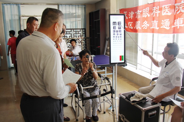 2015年5月25日,眼科医院社区服务直通车来到东丽区四合庄村委会,免费为当地199名居民进行了眼科义诊,受到了居民的热烈欢迎。