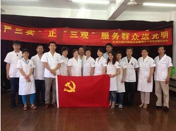 在“七一”建党节当天,天津市眼科医院党委组织了一次特殊的党日活动。医院的老党员,老同志,带领着医院年轻的党员们,与社区服务直通车一起,前往华苑绮华里社区,开展义诊服务工作。