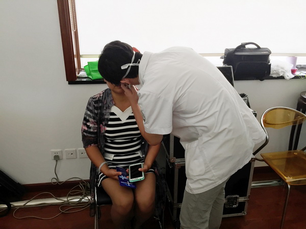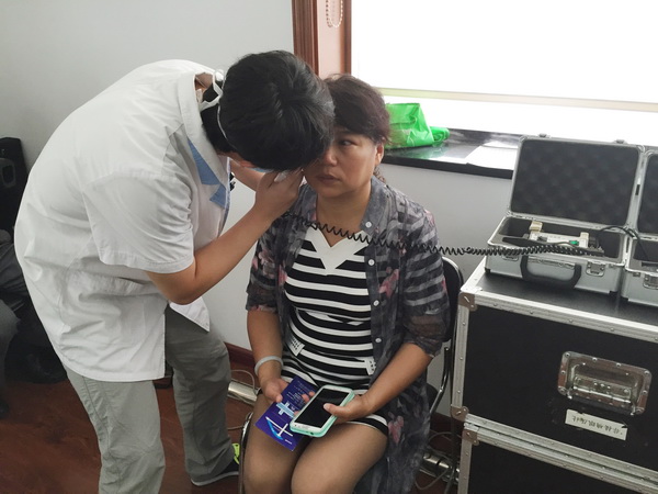 2015.7.10天津市眼科医院光明大巴来到市国际旅行社为88名职工进行了眼科义诊检查。