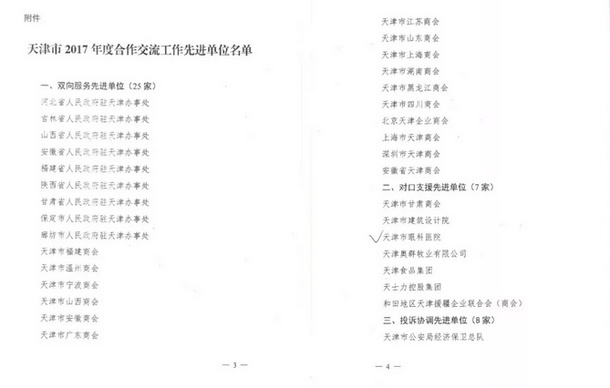 近日,天津市人民政府合作交流办公室发文,表彰了市眼科医院等7家为“2017年度对口支援先进单位”(津合综(2018)16号文件,其中我院是唯一一家医疗单位),肯定了我院在过去一年中全面落实市委、市政府决策部署,解放思想、创新竞进,真抓实干,积极实施精准对口帮扶所创造的佳绩。