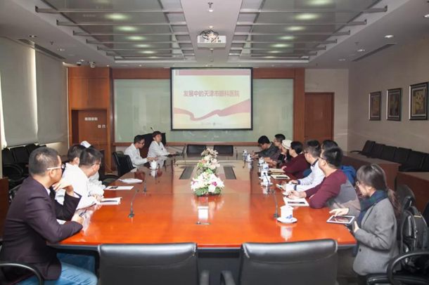 王雁副院长从医院历史、学科建设、诊疗服务、科研教学、交流合作、防盲公益、文化建设、成绩荣誉等方面,向考察团一行细致地介绍了医院的整体情况。