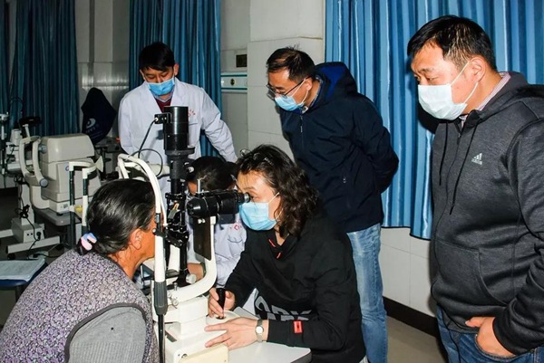在与援疆前方指挥部会合后医疗队随即兵分两路,斜视组赴和田地区人民医院,白内障组继续驱车4小时前往于田县。医疗队到达于田县人民医院已是晚上8点多了,但看到医院走廊里排满早已等待的患者,队员们来不及休整即刻投入到手术前的各项准备工作中。宋慧主任、田晓峰副主任为近110名初筛患者进行了术前检查,郭亚雯主任带领李华医生、主管护士贾金荣以及随行工程师,从手术间的布局、设备调试、耗材准备、消毒处理等各个环节并行有序地展开,待将全部准备工作安排停当,已近子夜。