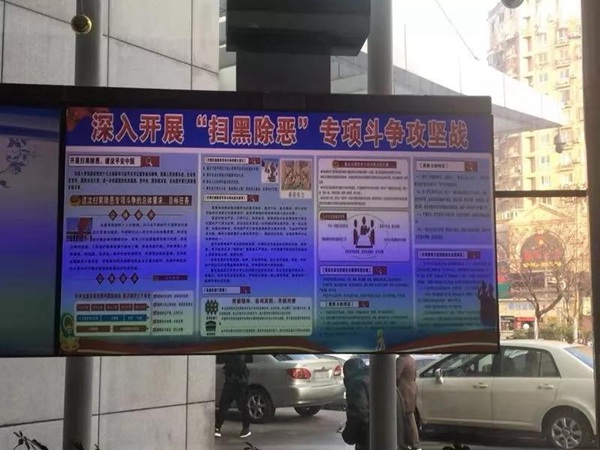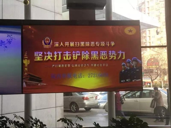 3. 不断加大全院范围“扫黑除恶”宣传力度,在显要位置悬挂宣传横幅,门诊大厅滚动播放宣传标语,公布扫黑除恶举报电话。