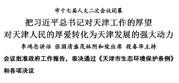 天津市第十七届人民代表大会第二次会议圆满完成各项议程,昨天下午在天津礼堂闭幕。