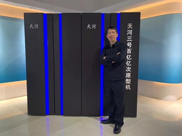 “天河三号”百亿亿次原型机。它由国家超级计算天津中心同国防科技大学联合研制,“天河三号”超级计算机的核心技术全面自主化,原型机系统采用三种国产自主高性能计算和通信芯片。(央视记者王哈男拍摄)