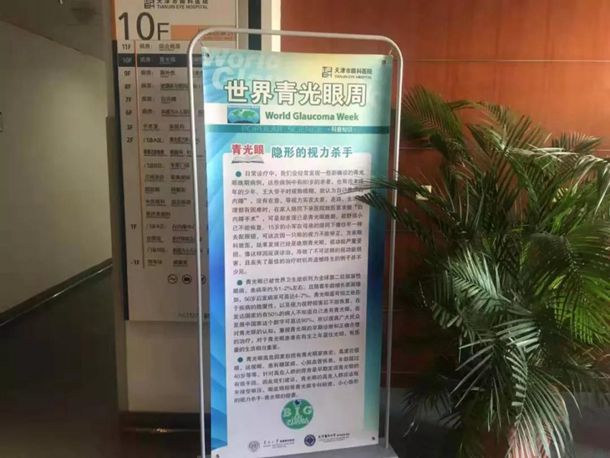 01 在门诊大厅、二层大厅及诊区、十楼住院部等多点位摆放宣传海报及世界青光眼周的相关科普宣传资料。