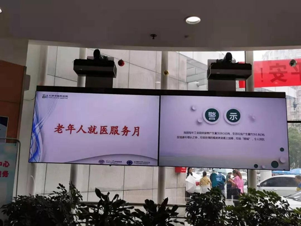 医院大力宣传和落实“老年人就医服务月”要求,通过在门诊大厅电子屏上滚动播放宣传主题、门诊患者服务中心桌牌展示、门诊显著位置布标条幅张贴等形式,向全社会传递我院践行“为民服务解难题”的决心和行动。
