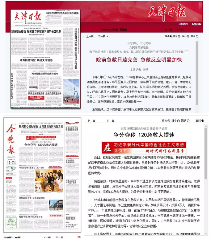 市卫生健康委医政医管处处长刘先夺介绍说,今年我市明确提出急救电话10秒接听率100%、急救反应平均时间2019年降至13分钟以内、2020年降至10分钟以内的目标。目前,我市的院前医疗急救体系建设已初见成效,全市院前医疗急救关键指标明显改善,院前医疗急救体系各项指标已进入全国先进行列。下一步,市卫生健康委将继续加强院前医疗急救体系建设和立法工作,加快有关区急救分中心建设和人员编制、经费保障工作,不断提升院前医疗急救智能化、规范化和精细化管理水平,打造全国120急救“天津模式”。