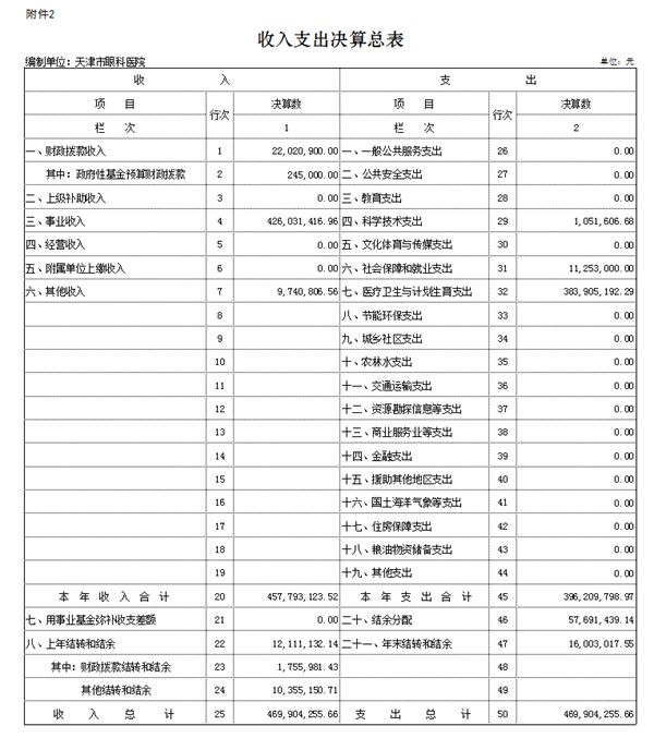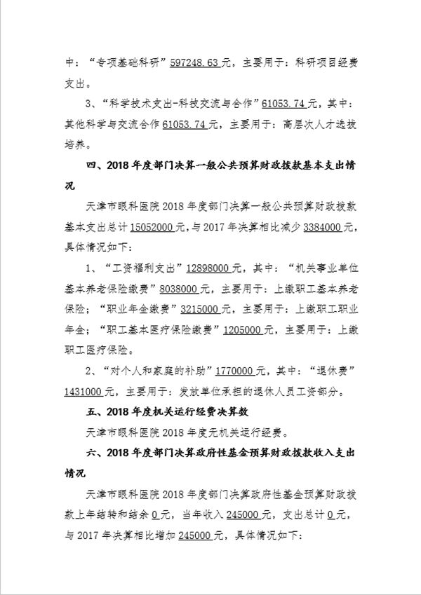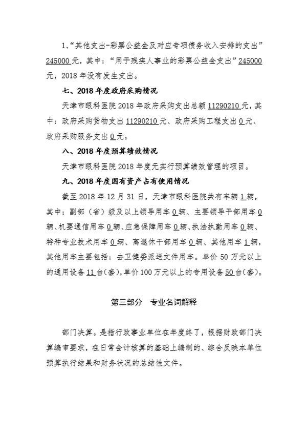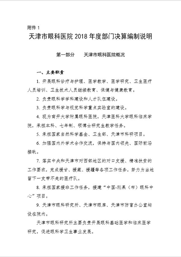 附件一:天津市眼科医院2018年度部门决算编制说明