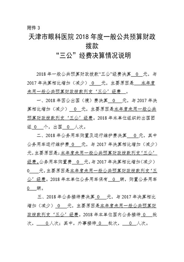 附件三:天津市眼科医院2018年度一般公共预算财政拨款“三公”经费决算情况说明