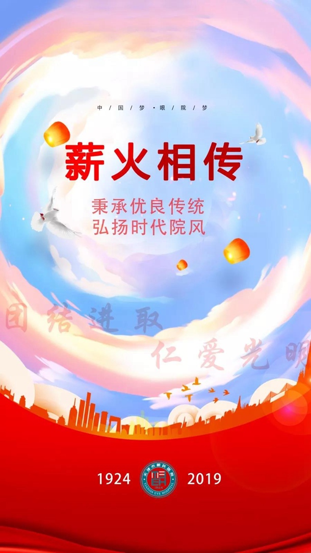 今年既是新中国成立70周年,同时也是我院建院95周年,这是一个有着九十五载厚重历史与人文精神的集体。九十五载的光阴,我们所能书写的,或许只是其中的星星点点,但身处时代脉搏中的人们所感受到的那份律动却是同一的,而我们所要做的,就是把握住这份感受,找寻到一代代天津眼院人开拓、奉献的思想价值和奋斗意义。