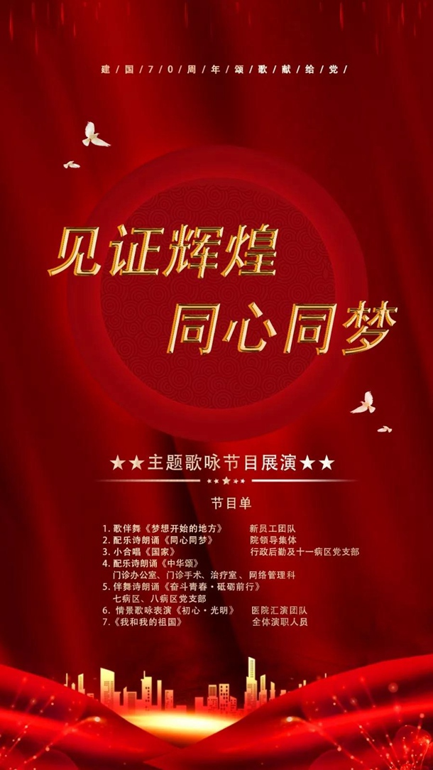 凝望金秋,我们用一样的心情期待收获,见证辉煌,我们用赤诚的忠心歌唱祖国。在歌咏节目展演中,医院所精选出的来自不同部门、科室、党支部的朗诵及歌舞节目表演,共同表达了每个中华儿女对伟大祖国迈进新时代的礼赞。