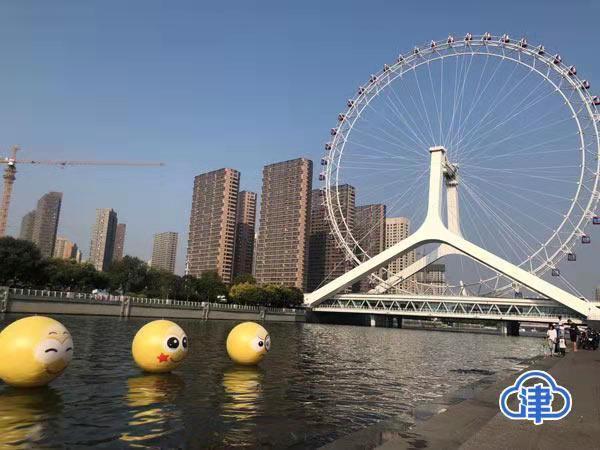 手机里的表情咋掉海河里了?!国庆表情球亮相海河天津之眼