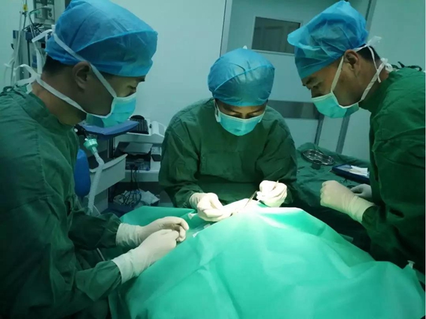 稍事休息后,第一天的手术工作开始了。为了能让更多的患者得到治疗,我们的队员连工作用餐都安排进了手术休息区,在手术过程中还不忘对身边的医护人员进行带教指导。