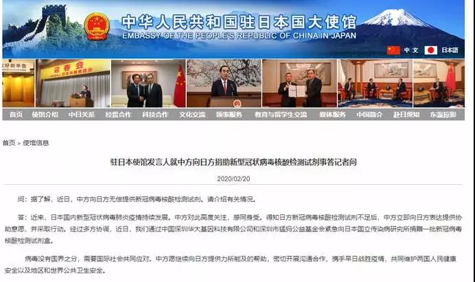 中方紧急向日本捐赠一批新冠肺炎核酸检测试剂盒