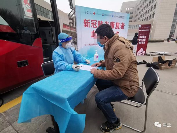2月20日下午,天津市第二例出院的新冠肺炎患者成为本市捐献血浆的第一人。