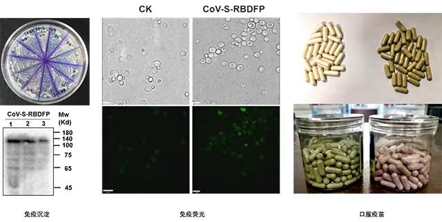 该新型防治制剂应用食品级安全酵母作为宿主研制生物防治制剂,通过口服途径免疫,具有激发局部黏膜免疫、调节机体免疫稳态,使用方便,安全性好、产能迅速等优势。目前,团队已完成了重组菌株构建、筛选,蛋白表达、发酵动力学等核心技术开发内容,并制备了少量胶囊、奶片、颗粒剂口服防治制剂样品。黄教授介绍说,该新型防治制剂除表达的病毒外源基因外,表达元件全部为酿酒酵母自身基因片段,不含外源抗性基因。其通过高表达新冠病毒保护性抗原,一方面可作为病毒感染的竞争性治疗制剂,也可通过激活黏膜免疫的疫苗机制,发挥预防性抗感染功能。其安全性、免疫方式、成本节约等优势突出,特别适用于应急性、无常规疫苗的烈性病防控。
