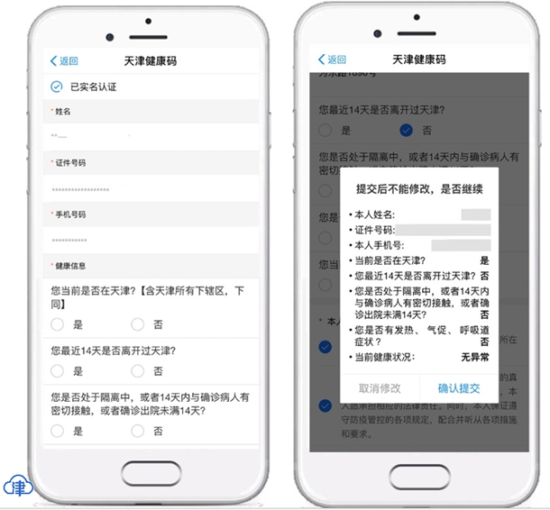 即日起,天津市民及拟入津人员可本着自主自愿的原则,申领并使用专属“健康码”,申领一次即可打通生产生活的出入环节,一“码”知晓个人防疫健康风险。通过精准健康监测,实时动态管理,用大数据工具为统筹疫情防控和复工复产智慧赋能。