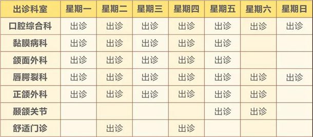 口腔各专业门诊均开放诊疗;如需喷溅诊疗和需长时间张口的有关诊疗将采取预约诊疗模式择期治疗;对口腔颌面部恶性肿瘤及创伤患者开展住院治疗。