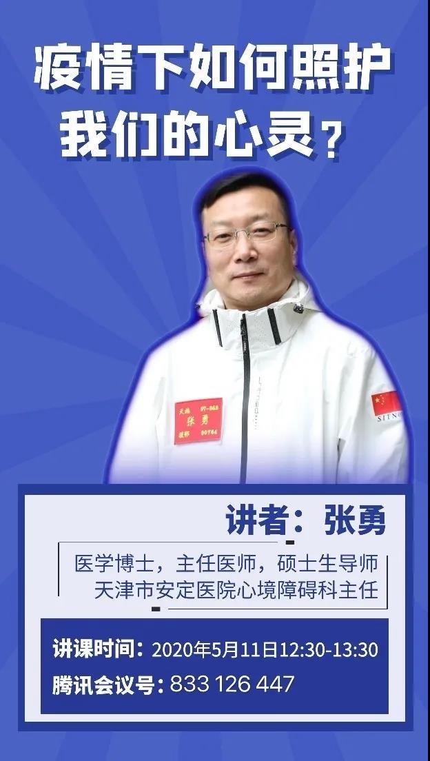 第一场讲座特别邀请到天津市安定医院心境障碍科、天津市精神卫生研究所临床心理研究室张勇主任,为大家进行线上授课。张勇主任曾奔赴恩施抗疫一线,为134名医疗队员和当地医护人员进行心理疏导。他从抗疫期间医护人员遇到的心理危机、如何调适、如何有效照护自我等方面,深入浅出地给大家提供了专业的建议和指导。张勇主任经验丰富,讲课内容精彩生动,新颖实用,受到大家的热烈欢迎。