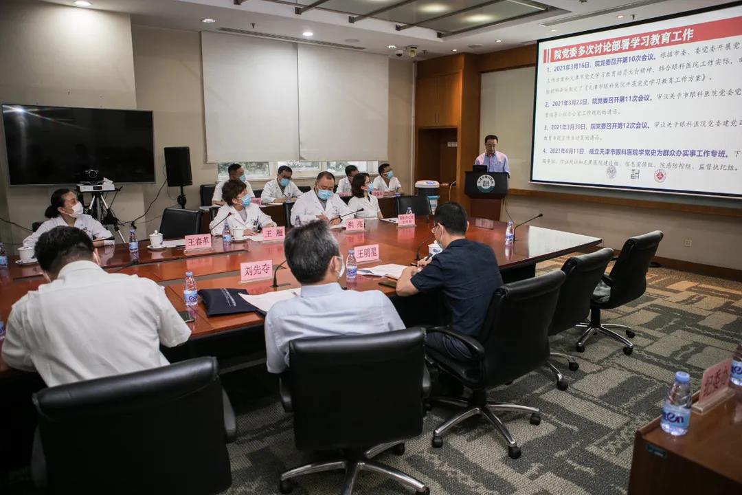按照市卫生健康委党委党史学习教育整体工作部署,6月25日,党史学习教育第一阶段巡回指导工作会在市眼科医院召开。市卫健委党委委员、副主任刘先夺、市卫健委党史学习教育第一阶段巡回指导工作组成员、市眼科医院院领导及相关科室负责人参加了会议。