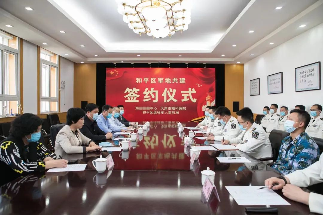 签约仪式在海军某信息中心举行,和平区副区长邵将出席仪式,海军某信息中心、和平区退役军人事务局、天津市眼科医院主要领导及相关部门负责人参加。