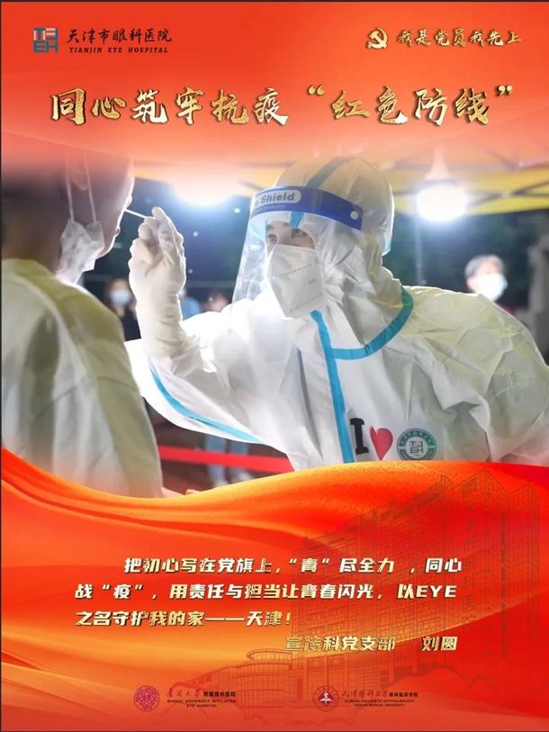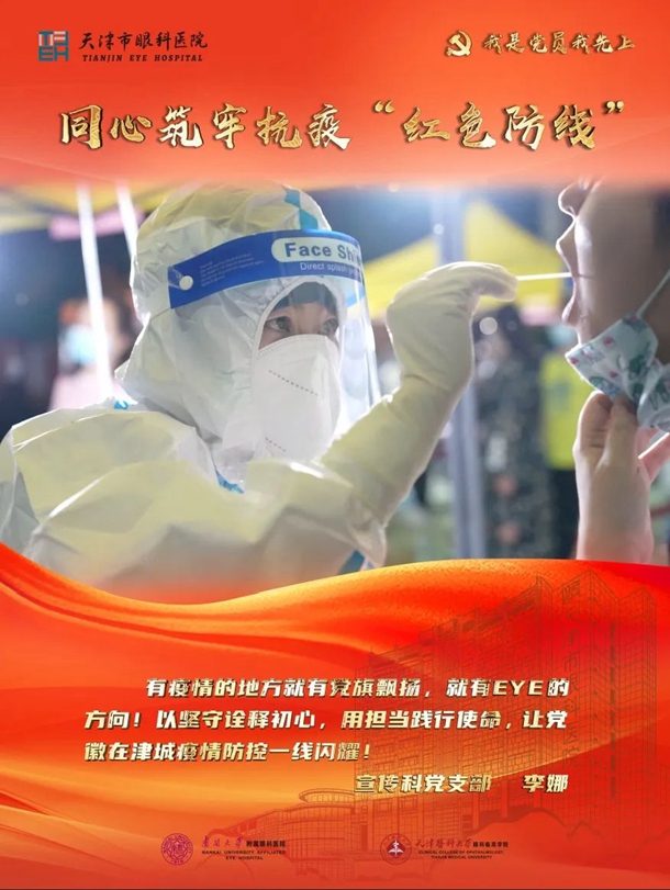 在当前天津严峻的疫情防控形势下,天津市眼科医院党委始终把疫情防控作为当前最重要、最紧迫的政治任务,把党史学习教育成果转化为疫情防控和服务群众的强大动力,构筑起一道道严密的“红色防线”,在战疫一线践行初心使命和责任担当。