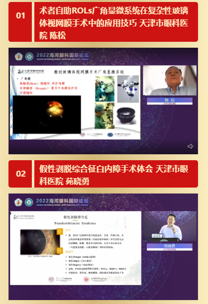 在会议的第二时段,由天津市眼科医院苑晓勇主任和李月平主任作为主持嘉宾,天津市眼科医院陈松教授、苑晓勇主任、赵红主任、史学锋主任、李月平主任、姜浩主任、韩梅主任、陈陆霞主任、楚艳华主任、王莹主任、南莉主任、孙瑞强主任、杨瑾主任及鞠宏主任各专业的学术骨干,结合自身研究领域,分享手术技巧及临床诊疗经验,引起广大听者共鸣,无不直呼过瘾。