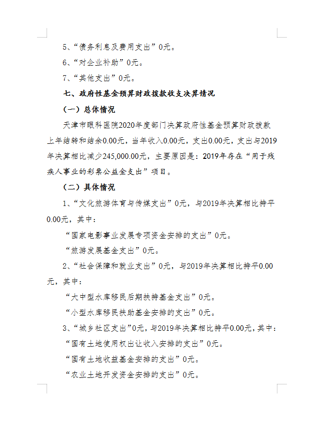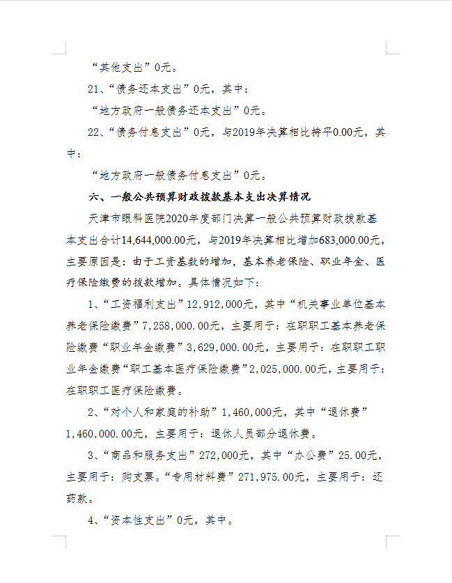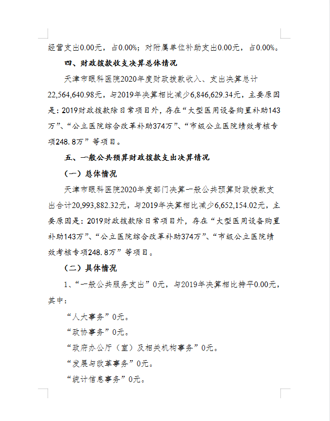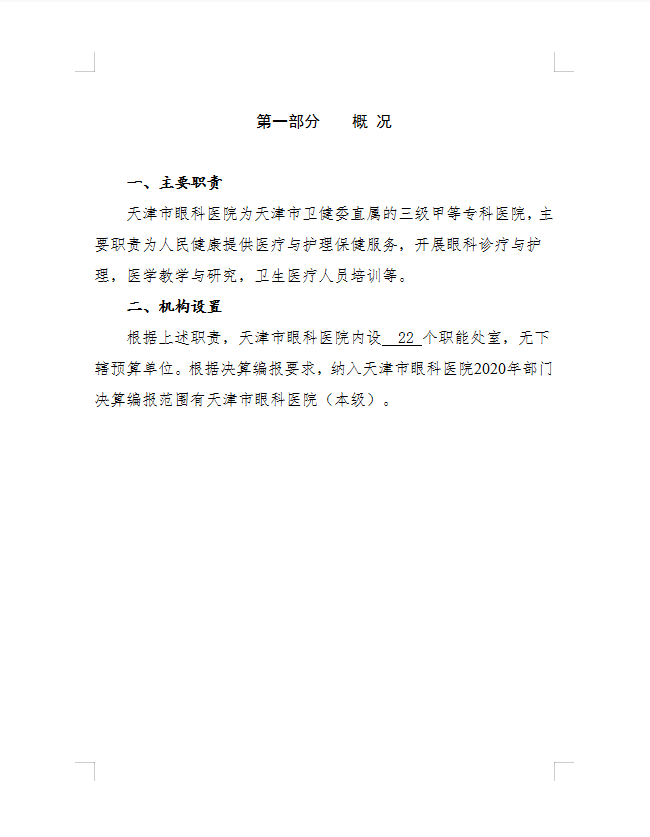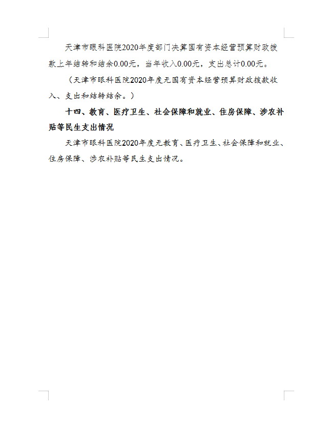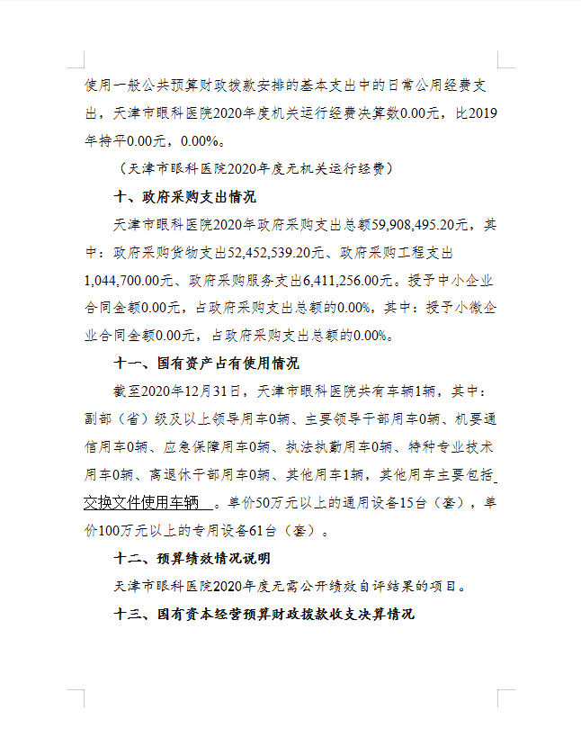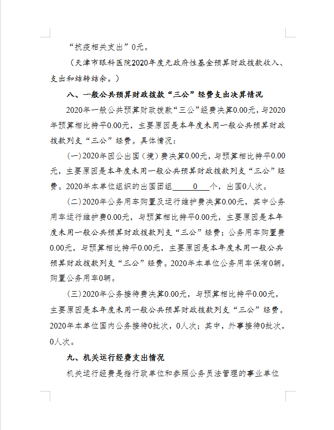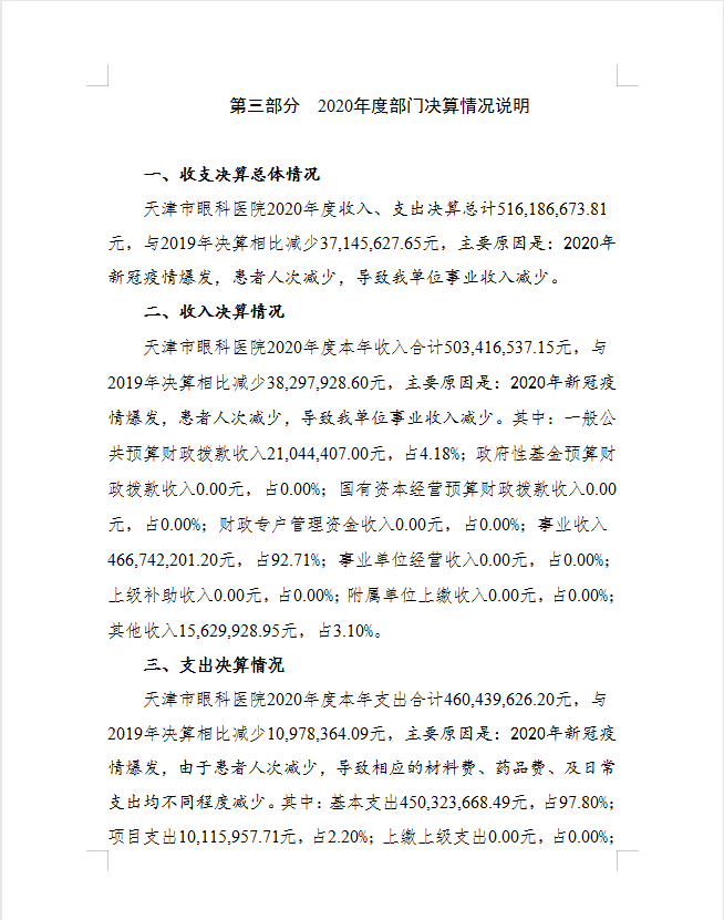 天津市眼科医院2020年度部门决算和“三公”经费决算