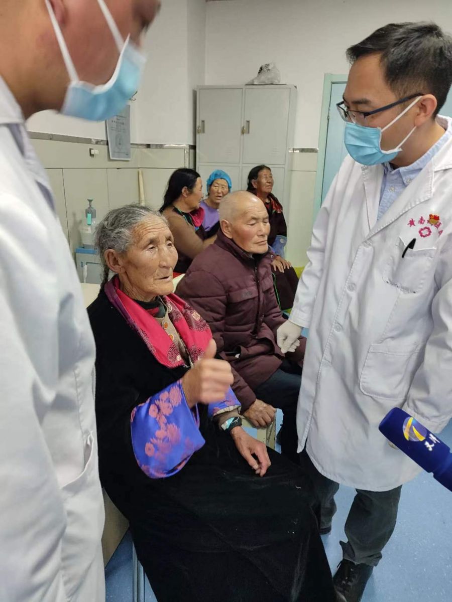 17日上午,当术后老人们的眼罩被陆续揭开,我们看到了一张张激动的脸,手术患者中年龄最大的藏族老人,84岁的所南措,更是用藏语一遍遍地说着谢谢,面前的一切,也让我们的队员们收获到了在播撒光明的道路上奋力前行的意义。结束了紧张忙碌的工作后,医疗队下午启程返津。