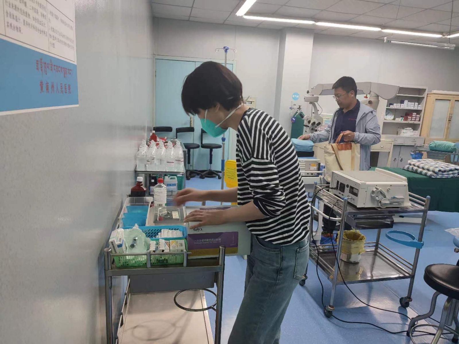 5月15日下午,医疗队先行抵达西宁。在与前来迎接的州人民医院与天津援青(泽库县)专家组会合后,乘大巴经两个半小时的车程,于傍晚6点抵达黄南州人民医院。面对等候检查的患者,队员们没能顾得上晚餐及休整,随即投入到近50名患者的术前检查及手术室设备调试与各项准备工作中。