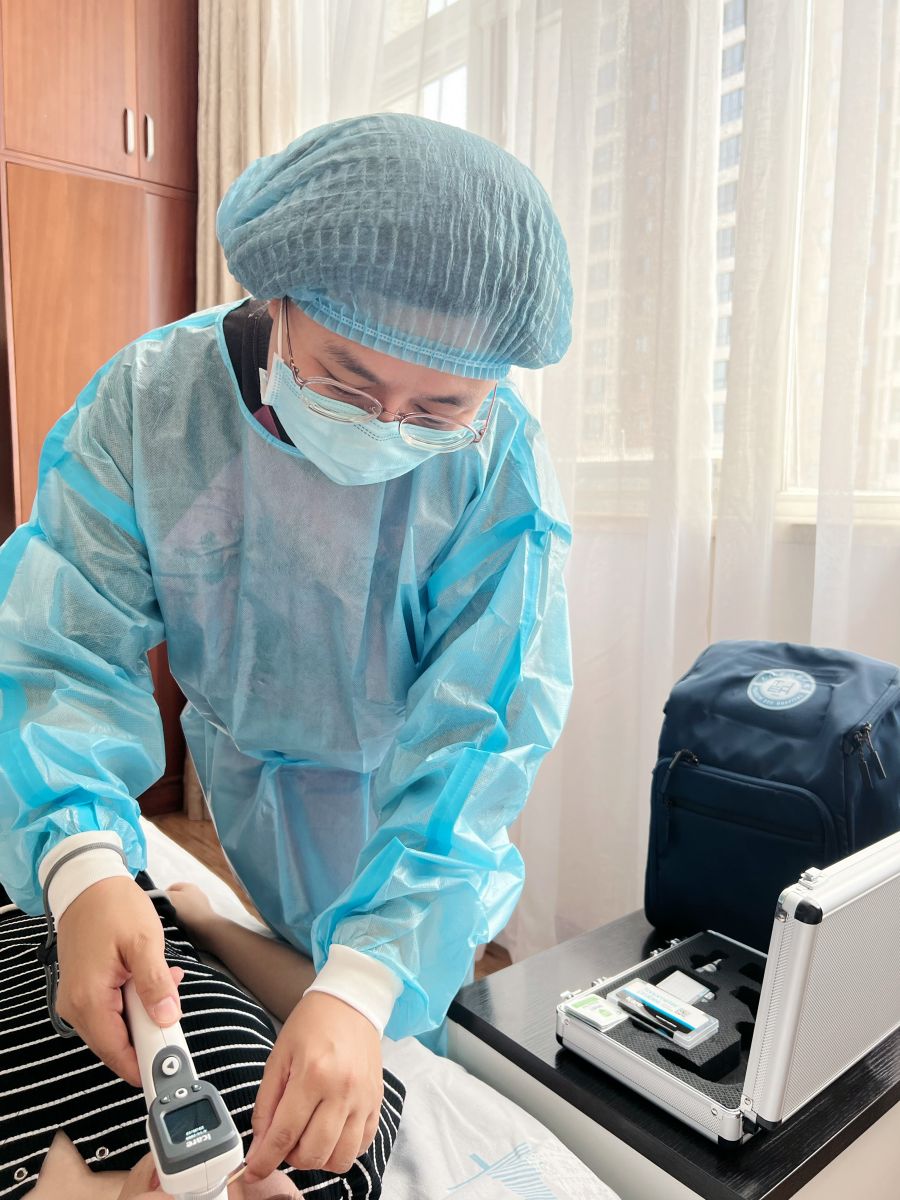 标准的着装,专业的配备,两位护士如约到达患者住处,身份核查、专业评估,教科书般地完成了眼压测量的操作,并耐心解疑答惑,指导患者及家属居家环境下自我护理的重点与方法。娴熟规范的技能操作、专业贴心的护理服务,得到患者的高度赞扬。