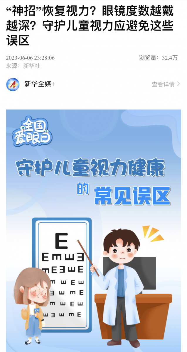制作全国“爱眼日”主题宣传片、海报、科普视频。全国“爱眼日”宣传教育周期间,医院微信平台推送10余条科普内容。