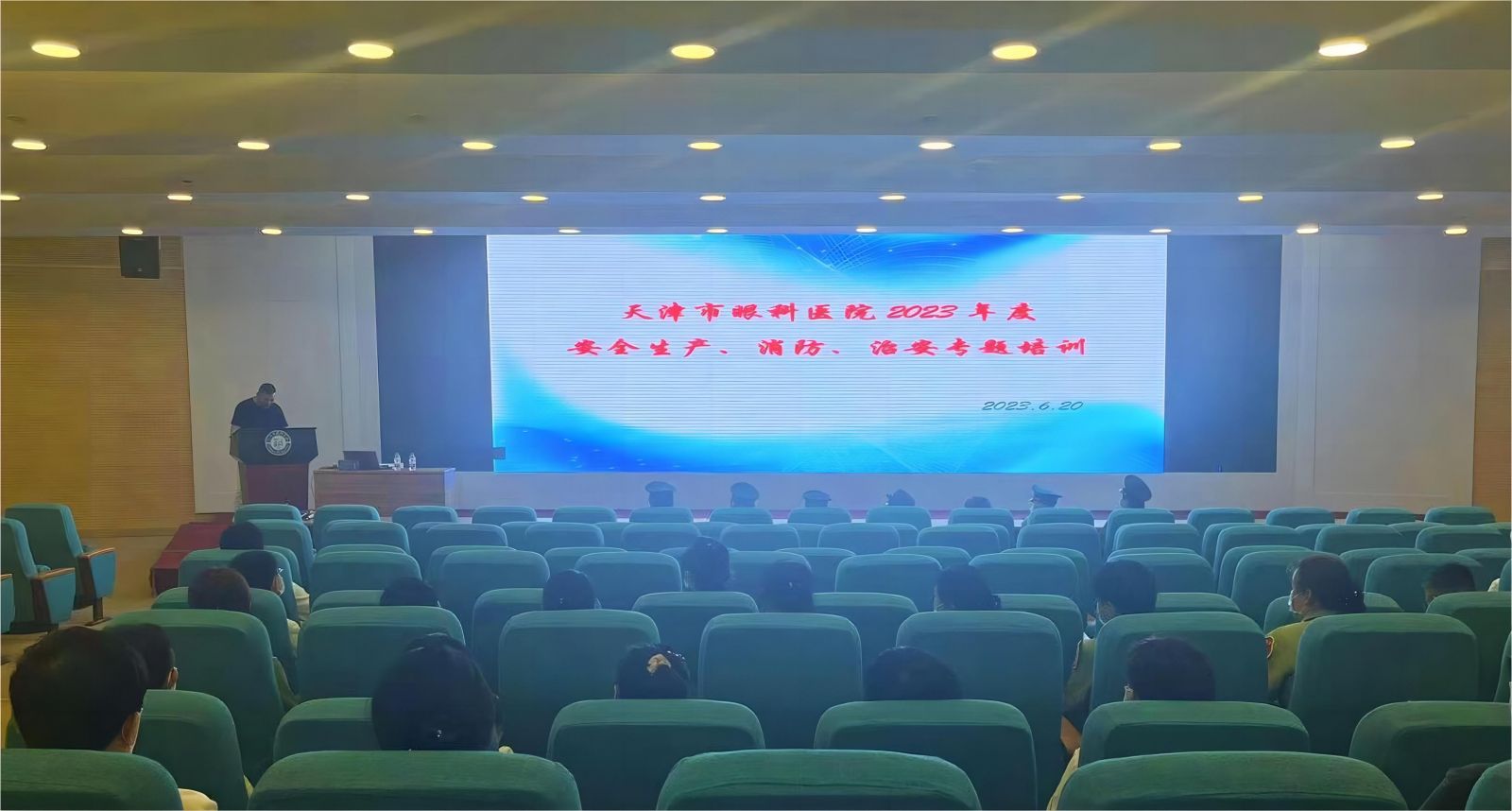 为深入贯彻党的二十大精神和习近平总书记关于安全生产重要论述,贯彻落实国家“安全生产月”活动精神,坚持人民至上、生命至上,坚持统筹发展和安全,持续树牢安全红线意识,天津市眼科医院院领导高度重视,保卫科、总务科联合组织开展安全生产、消防、治安专题培训会,特邀安全生产专家、消防支队专家、市公安局和平分局内保支队专家为职工进行知识讲座培训。