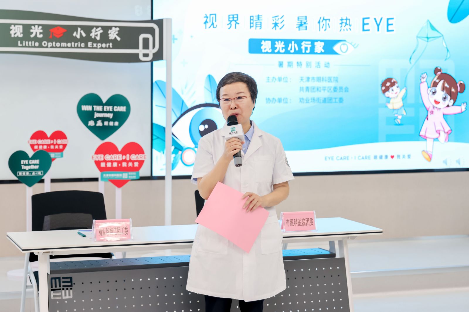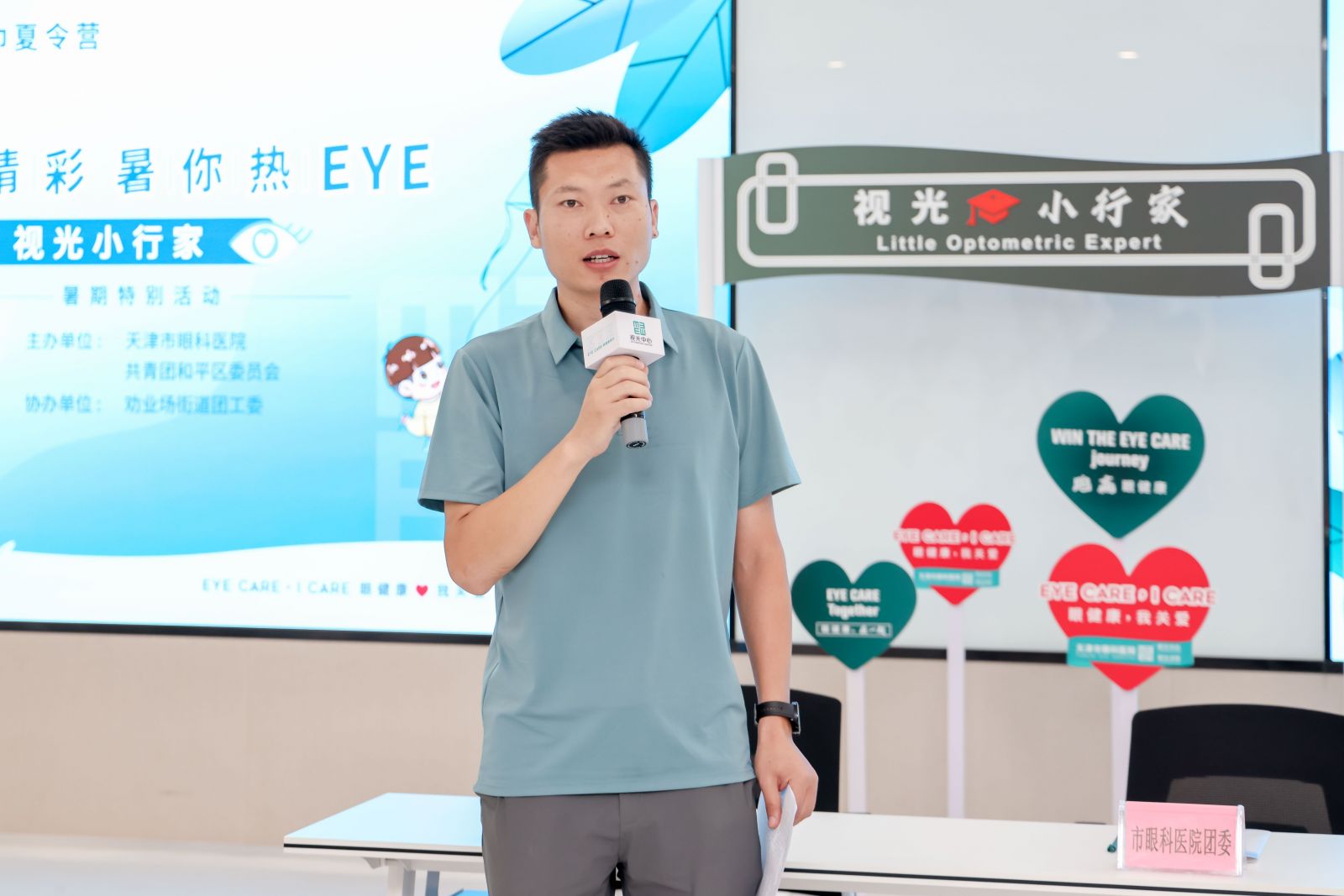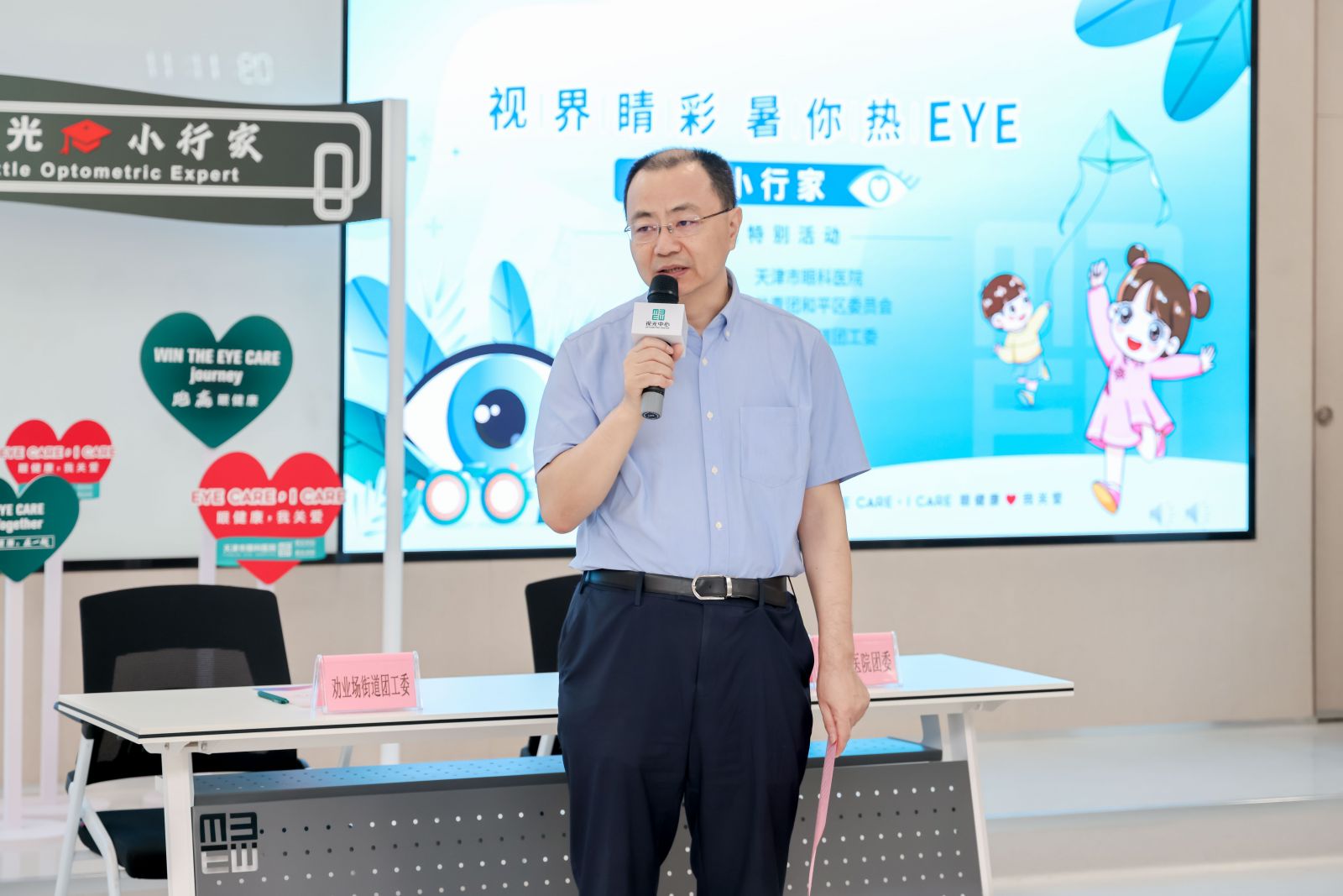 王春革书记对参加此次活动的小朋友及家属表示热烈欢迎,并对和平区团委、劝业场街道的大力支持表示诚挚谢意。他强调,拥有好的视力,是孩子们健康成长的重要基础,作为天津市青少年近视防控中心,眼科医院责任重大、使命光荣,将持续组织实施好这项惠民利民活动,与社会各界共筑儿童青少年眼健康保护屏障。