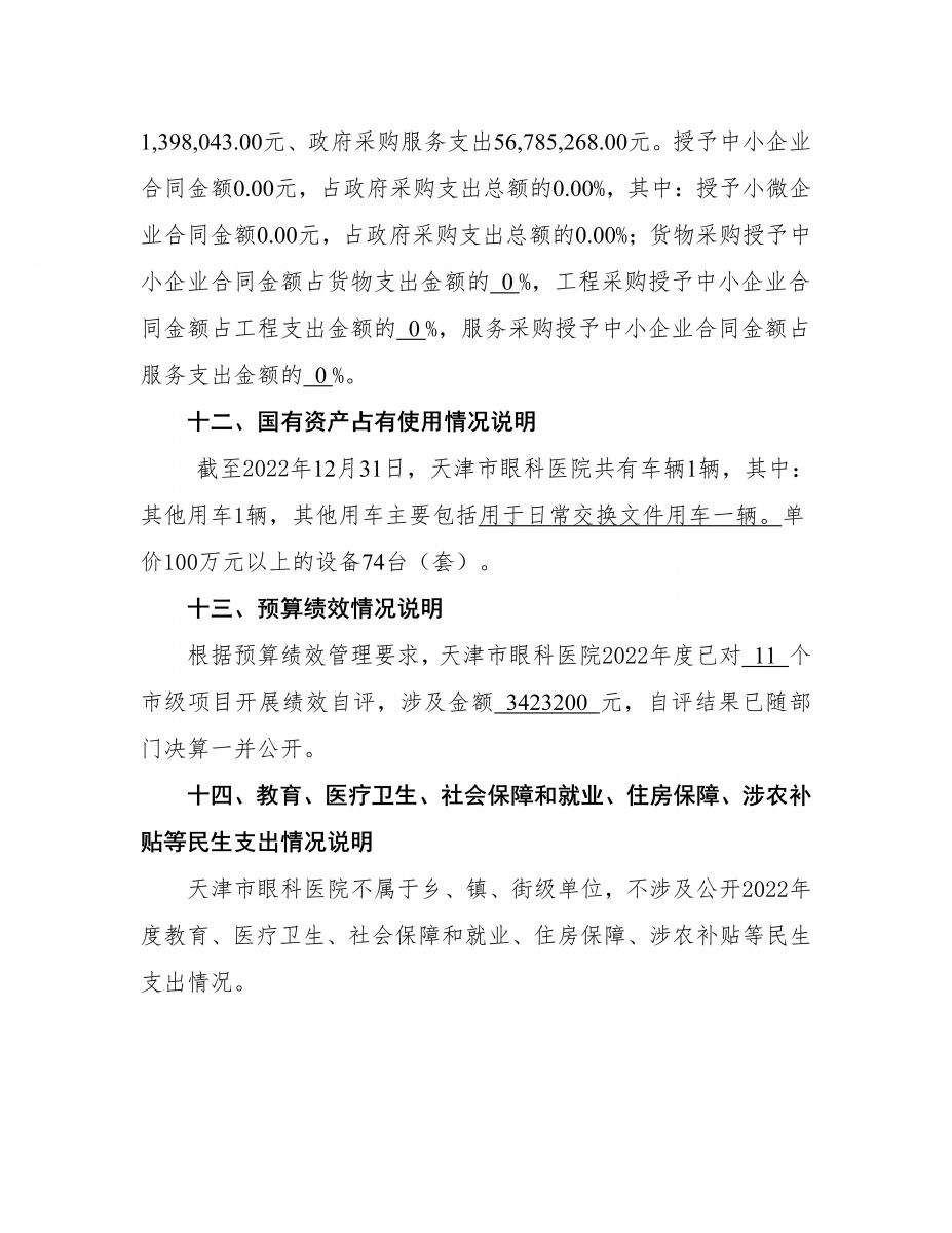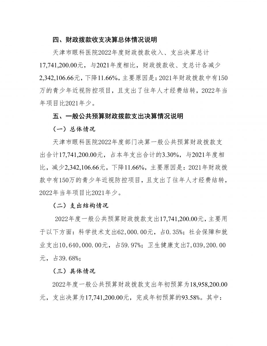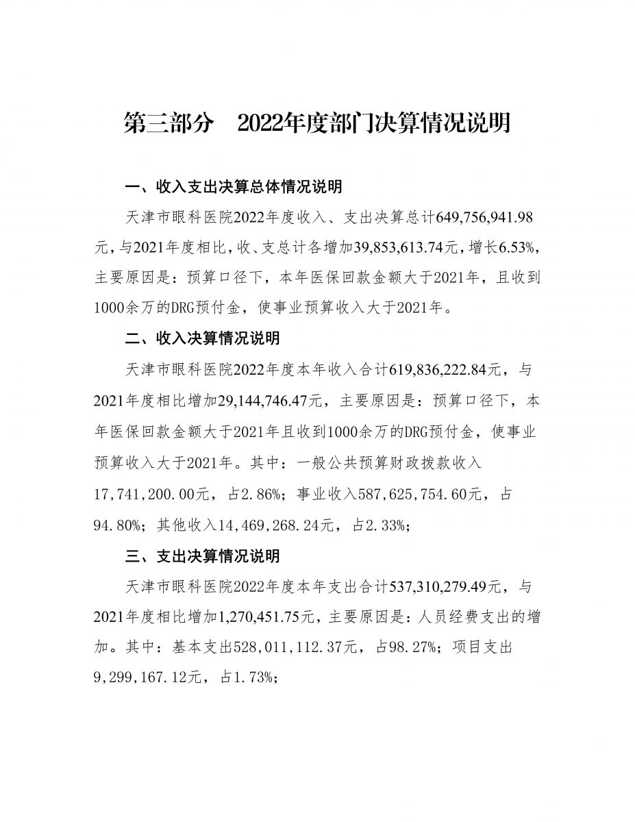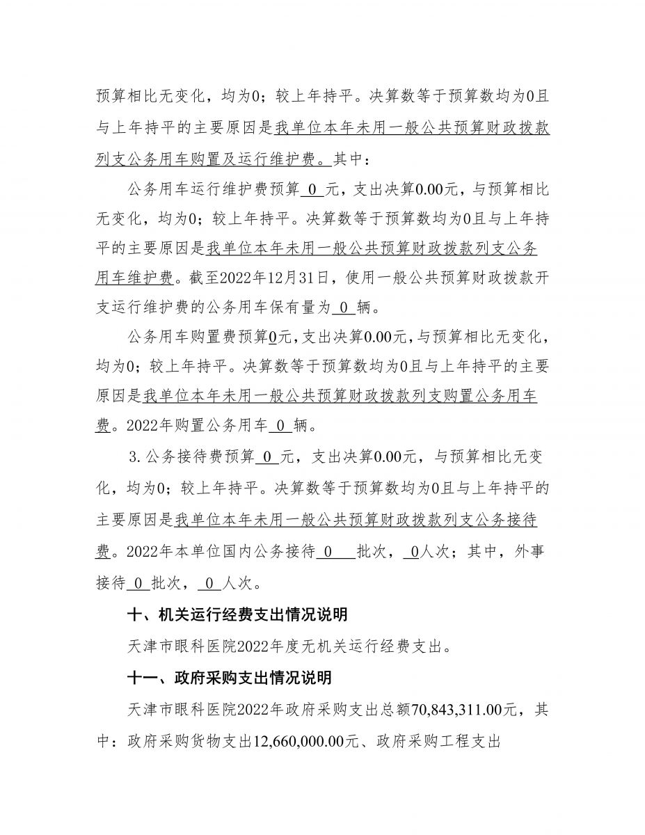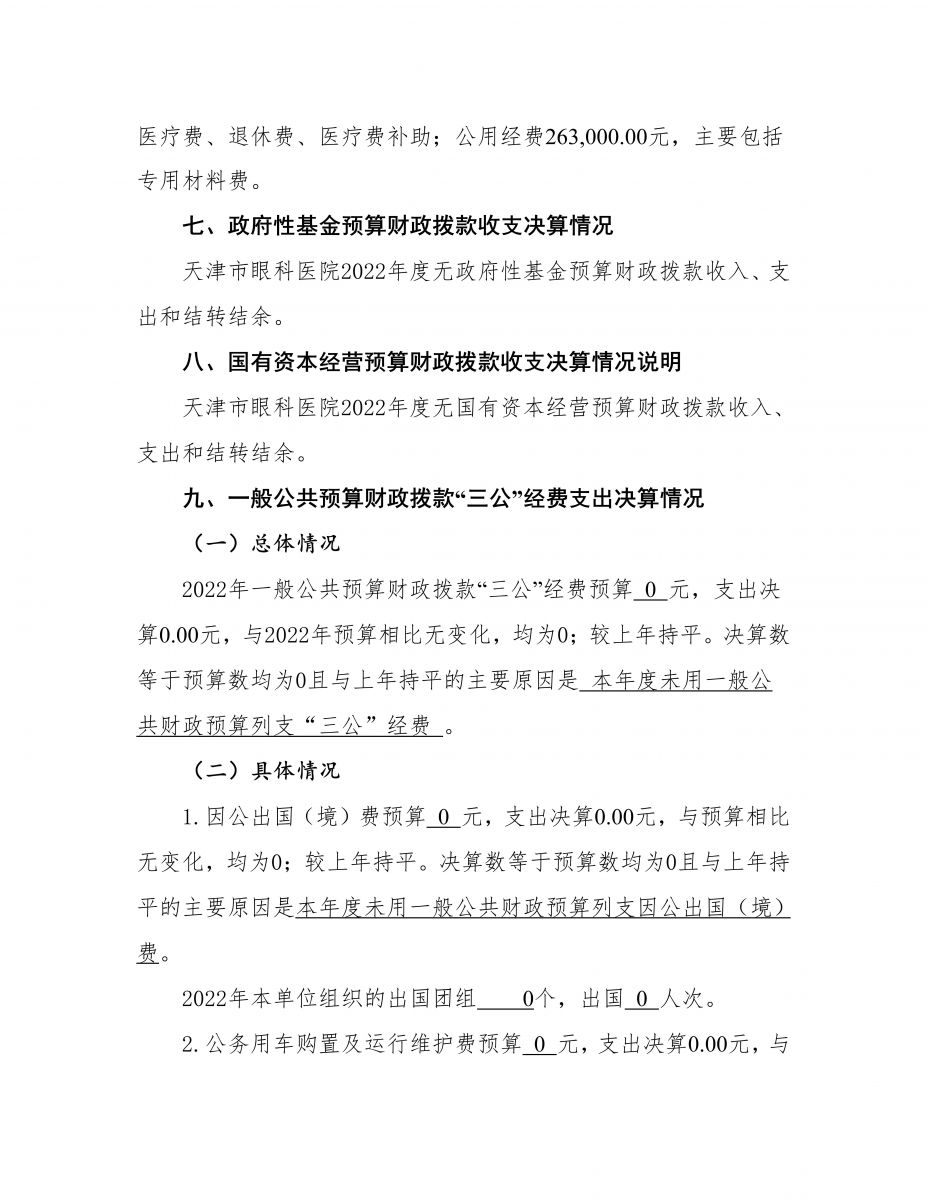 天津市眼科医院2022年部门决算和“三公”经费决算公开