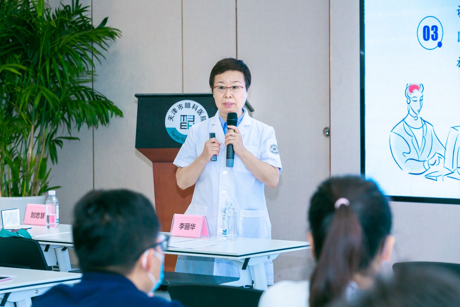 随后,市青少年近视防控中心(市眼科医院)开展了近视调查技术培训。市综合防控儿童青少年近视医疗卫生专家组副组长、市眼科医院视光中心主任李丽华从调查区域、学校安排、学生数量、调查内容与方法、部门职责、时间进度等方面讲解了2023年天津市儿童青少年近视调查工作安排。