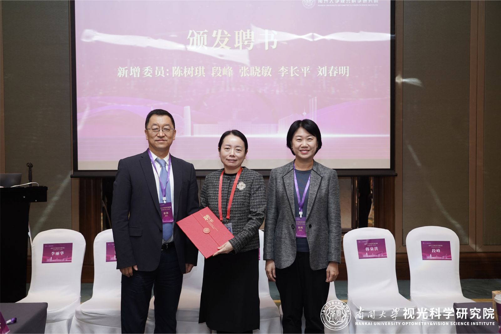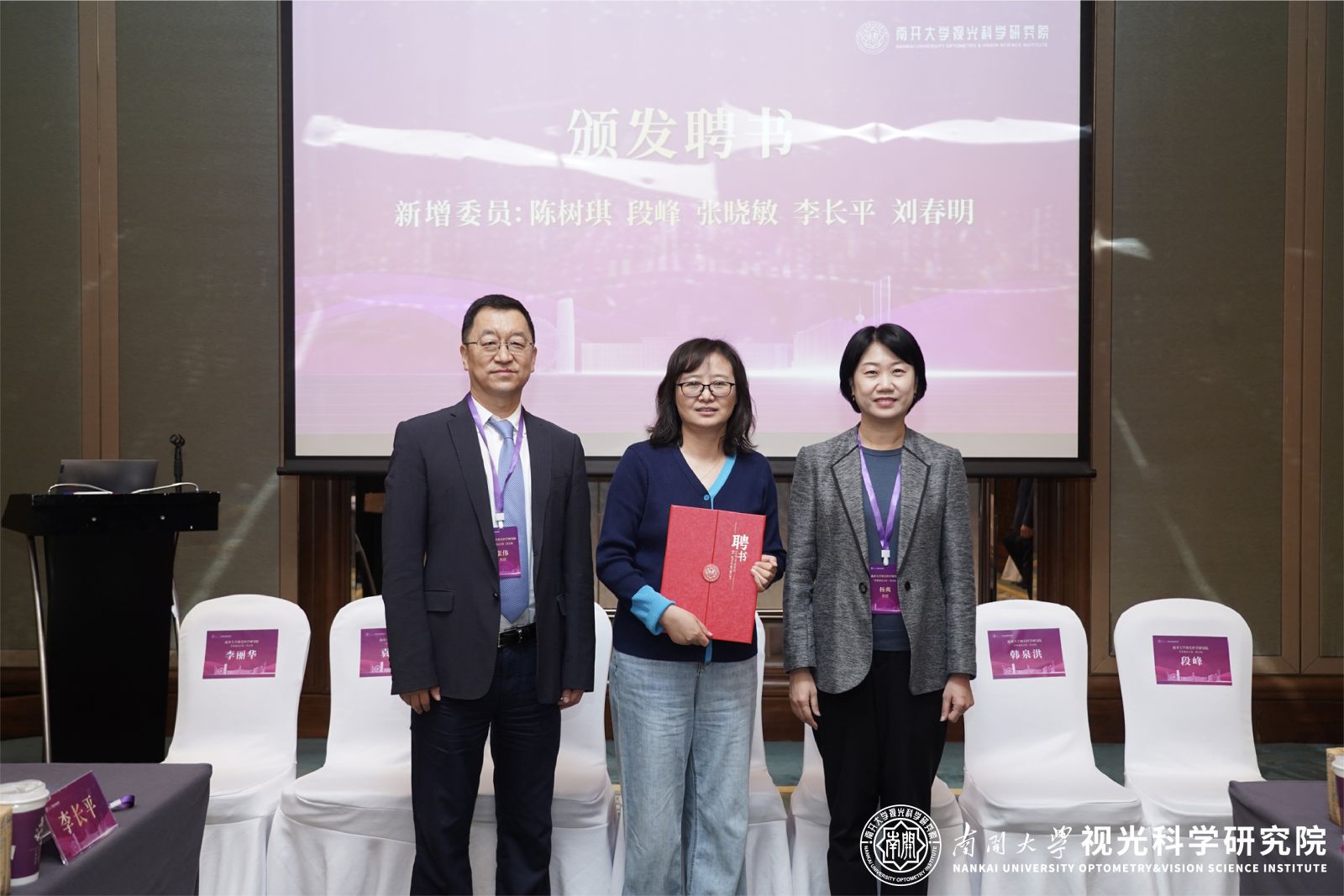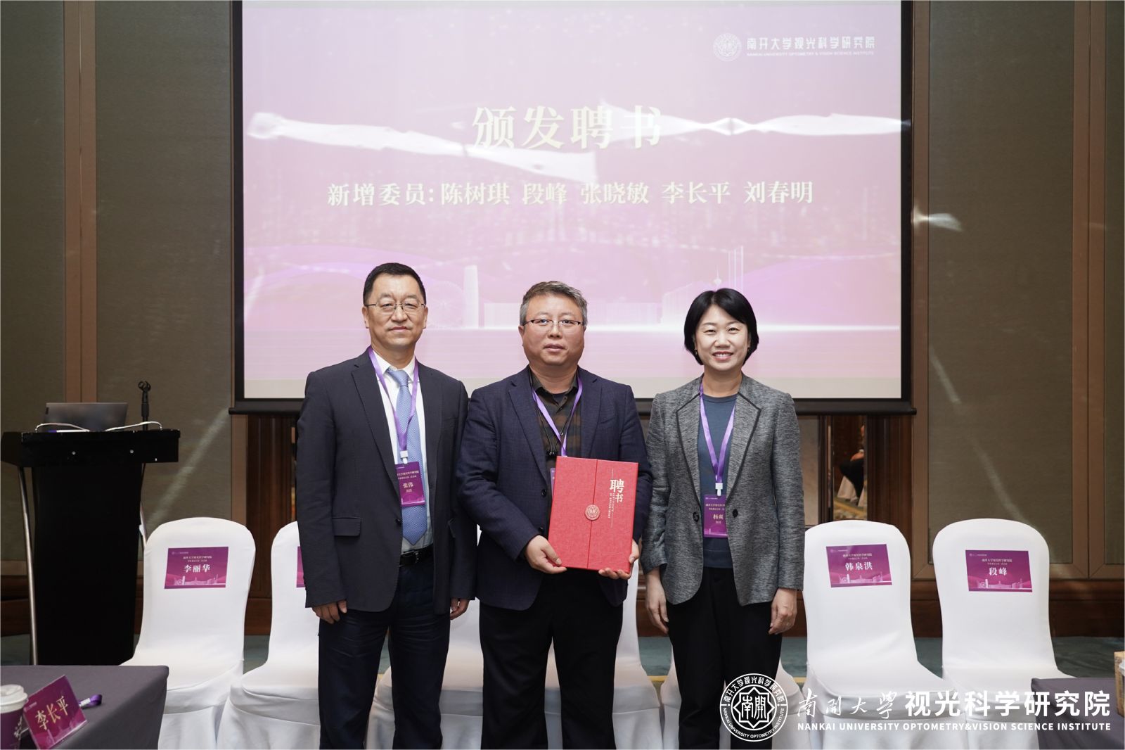 为汇聚多元学术智慧,强化科研方向引领,我院近日正式增聘五位来自不同专业领域的学者担任学术委员。他们分别是国家重点研发计划首席科学家、南开大学物理科学学院陈树琪教授,南开大学医学院人工智能医学专业、介入脑机接口专家段峰教授、天津市眼科医院副院长张晓敏教授、天津医科大学流行病与卫生统计学院李长平教授以及原美国太平洋大学视光学院刘春明教授。此次重磅引入,旨在借助委员们深厚的专业造诣与前瞻视野,为我院各研究课题的把关与创新提供强力支撑,从而驱动视光研究院实现长足、稳健的高质量发展。由张伟主任委员和杨爽副主任委员共同为新任委员颁发聘书。