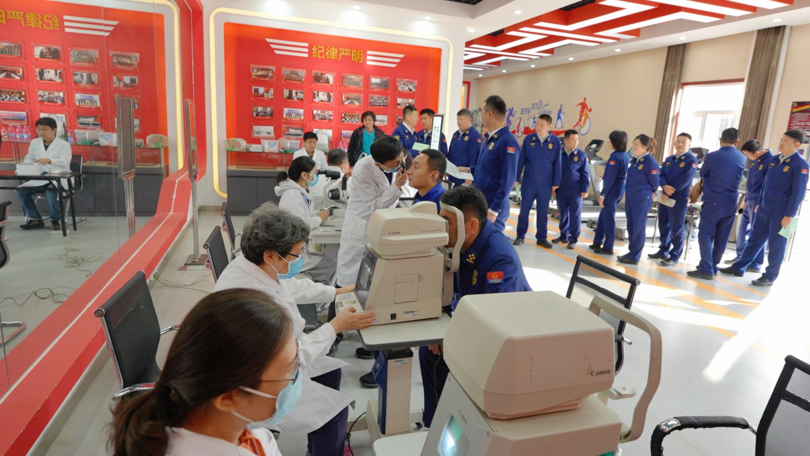 义诊现场整齐有序。眼科义诊团队提供了各项专业检查、爱眼护眼知识解答、镜框检护、眼健康科普材料发放等服务,为一线救援支队的干部队员送上一份“看得见的温暖”,传递着对“火焰蓝”的诚挚关爱与健康守护。