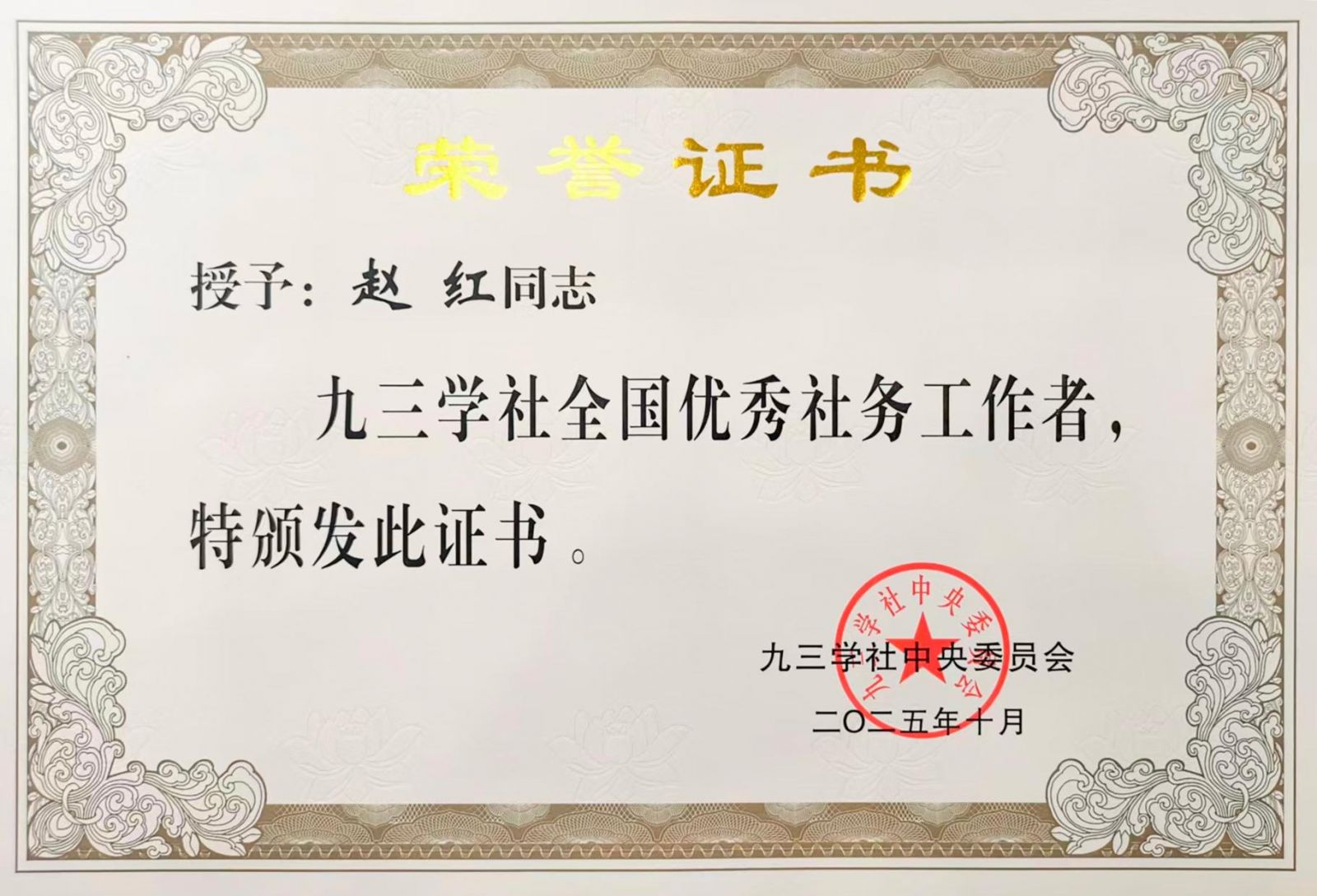 喜报!市眼科医院赵红荣获九三学社“全国优秀社务工作者”称号