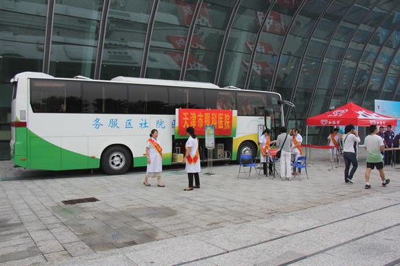2012年8月18日,我院直通车在东丽区空港经济区举办义诊咨询活动