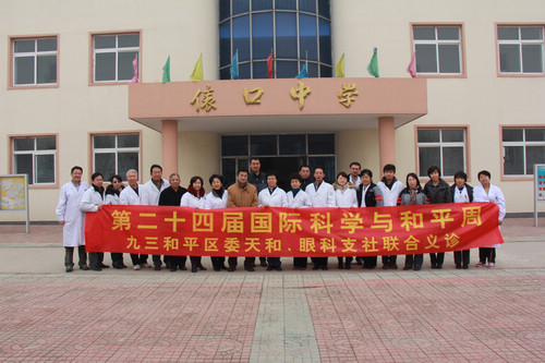2012年11月25日,我院直通车与九三学社合作,在宁河俵口乡中学进行了九三和平区委天河、眼科支社联合义诊活动,为学校45名老师进行了眼科检查,并发送了一些常用的药品,受到了老师们的热烈欢迎