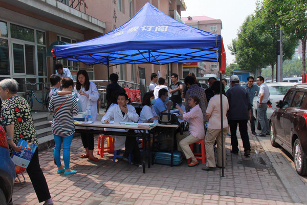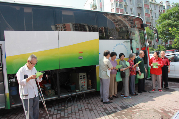 2013年6月11日直通车到达玉水园老年大学义诊服务。