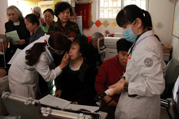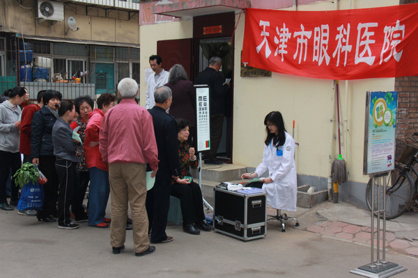 2014.3.27天津市眼科医院社区服务直通车来到大王庄积善里居委会,为151名老百姓进行了详细的眼科检查,并清洗修理眼镜30余副,受到了当地群众的热烈欢迎。